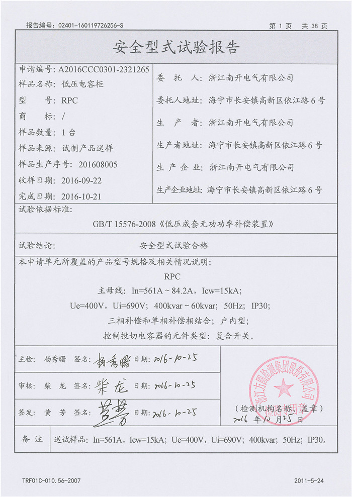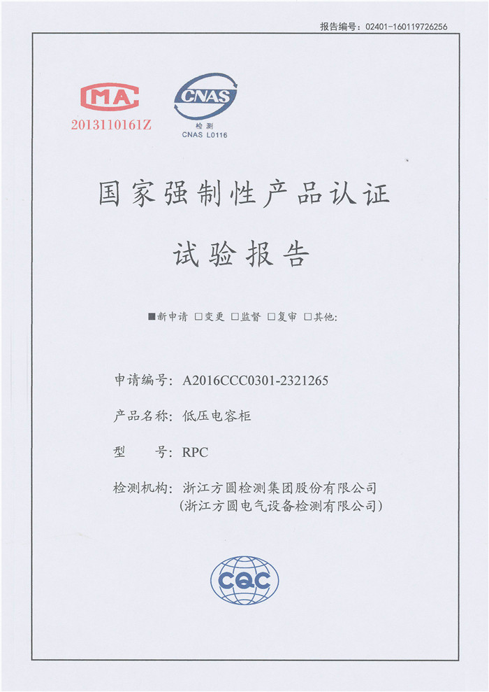 RPC 400kvar~60kvar 试验报告